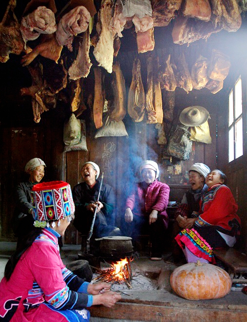 苗家人过苗年,腊月三十的年饭,一般做四样菜或六样菜,火塘生大火,通宵围坐火塘唱苗歌。正月初二至十五,寨子家家请客,户户有人出去做客。各家要将寨里每户请遍,也要依次去各户做客。苗年也因区域、姓氏宗支的不同而有所不同,流传着许多的传说故事,或与苗家先民的流离迁徙,或与抵御外敌入侵,或与躲避压迫剥削相关联,反映了苗族人民的风雨历史。