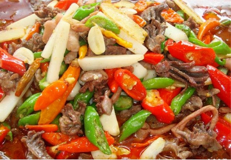 黔江鸡杂运用土家烹饪方法,以鸡肠、鸡肝、鸡心等鸡内脏为原料,并把鸡肉切成薄片,辅以土豆块、尖头泡椒、鲜葱等烹制而成,口味麻辣兼备,色鲜味美,醇香可口。
