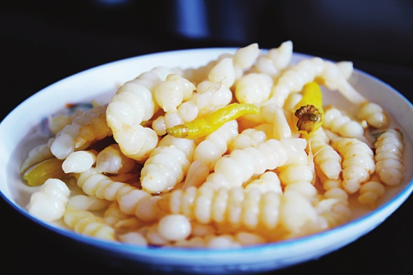 地牯牛别名草食蚕、宝塔菜、神虫菜,属多年生草本植物,是武陵山区绝无污染的特有品种。此菜用制泡菜的方法做成,晶莹剔透,香脆可口,酸酸甜甜,风味独特,不仅是良好的食物而且还有较高的药用价值。饭后食用能帮助消化,酒后食用还可解酒。