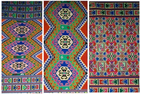 西兰卡普的图案,多用象征的手法,直线造型,连续对称,呈单一型的演进变化。“西兰卡铺”以红、蓝、白等色棉线为经,各色丝、棉、毛线作纬,采用挖空工艺,手工挑织而成。粗犷洗炼,结构丰满,取材广泛,其传统图案有200多种。现今,西兰卡普已成了质朴、典雅、极富民族特色的艺术之花,受到中外人士的青睐。