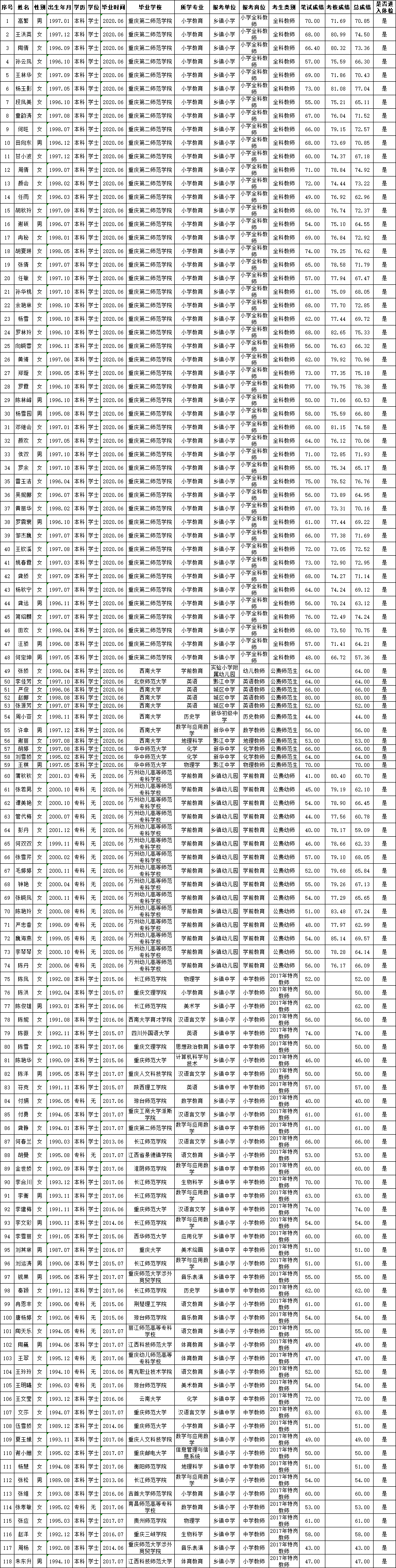 黔江区2020年定向考核招聘教育事业单位工作人员总成绩及进入体检人员名单公示