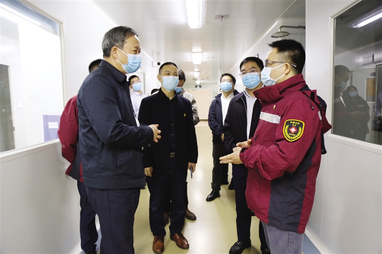 在黔江区疾控中心,徐江走进防疫物资储备仓库、检测实验室、流调溯源工作室等,详细了解全区防疫物资储备、核酸检测、流调溯源等情况,并向长期战斗在疫情防控一线的工作人员表示慰问,叮嘱他们做好个人防护,保护自身安全。他指出,要保持高度重视、高度警惕、高度负责,提升应急处突能力,时刻做好打硬仗打大仗准备。在区疾病预防控制体系建设项目施工现场,徐江详细了解项目建设进展情况,他指出,要在保障安全和质量前提下,加快项目建设,完善功能设计,提升全区疾病防控综合能力水平。当天,徐江还前往生活垃圾焚烧发电项目施工现场调研,就压实安全生产责任,加快项目扫尾确保早投产、早见效等提出要求。