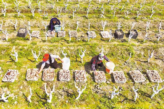 3月24日,村民在黔江区白石镇中河社区蚕桑基地采摘与桑树套种的赤松茸。