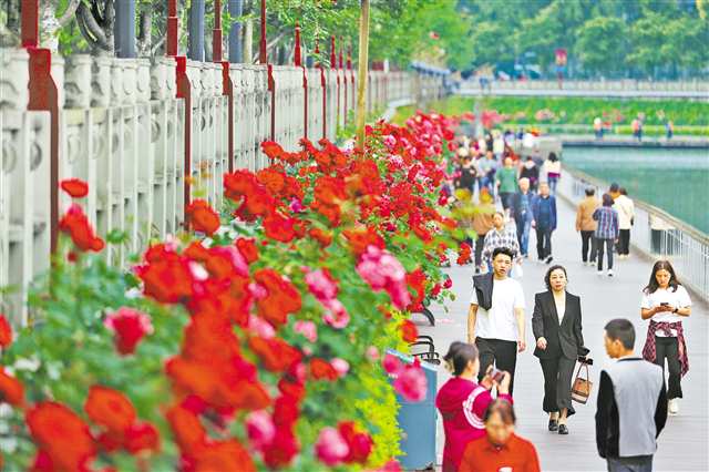 连日来,黔江区武陵水岸月季长廊的月季花芬芳绽放,吸引了众多市民前往赏花,感受初夏的浪漫。