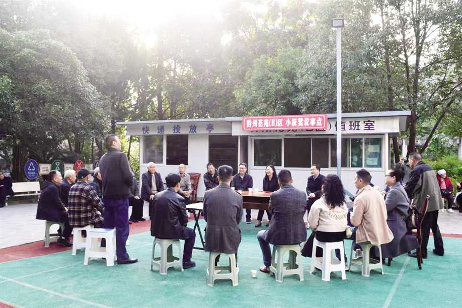 城西街道西山社区在黔州花苑设立“小板凳议事点”,聚焦居民出行便利问题展开面对面沟通