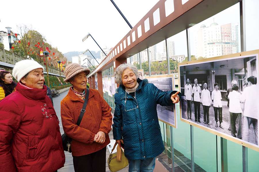2月8日,市民在黔江区长生桥美学市集观看《长生桥影事》。连日来,黔江区在武陵水岸举办的第五届长生桥美学市集上的“长生桥影事”老照片展,吸引了众多市民前往观展。“长生桥影事”展出老照片100多幅,时间跨度80余年,均由市民捐赠,涵盖了城市风貌、市井生活、重大事件、家庭记忆等多个主题。展览旨在邀请市民成为“记忆侦探”,在重温被定格的历史瞬间的同时,辨认、找出图片信息,并讲述、链接当地的历史故事和成长密码,“共建”一部民间影像史。此展从2月4日开始至3月3日结束,为期一个月。( 首席记者 杨敏 摄)