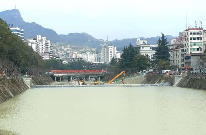 赶工期 保质量 黔江河水体整治提升工程施工忙