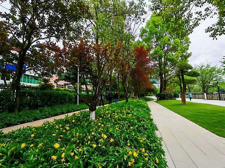 提升三:塑造彰显黔江魅力的生态景观带。改造把“水清岸绿”真正落了地。桂花树、红叶石楠,各种花灌木错落有致,四季都有颜色。观景节点点缀其间,走几步就能停下来看看河、吹吹风。